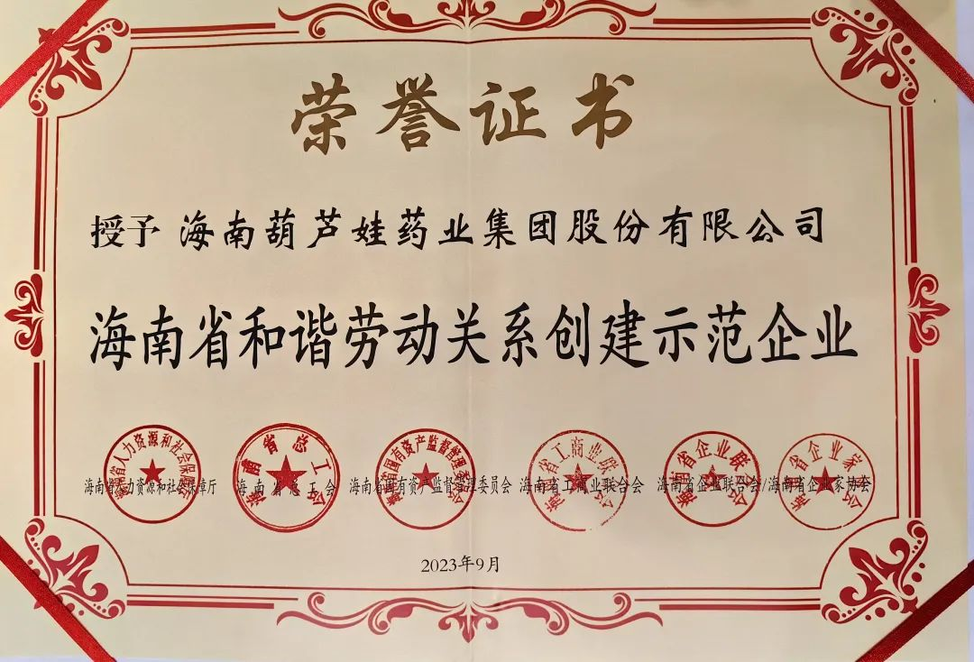 AG庄闲药业集团获评“海南省和谐劳动关系创建示范企业”