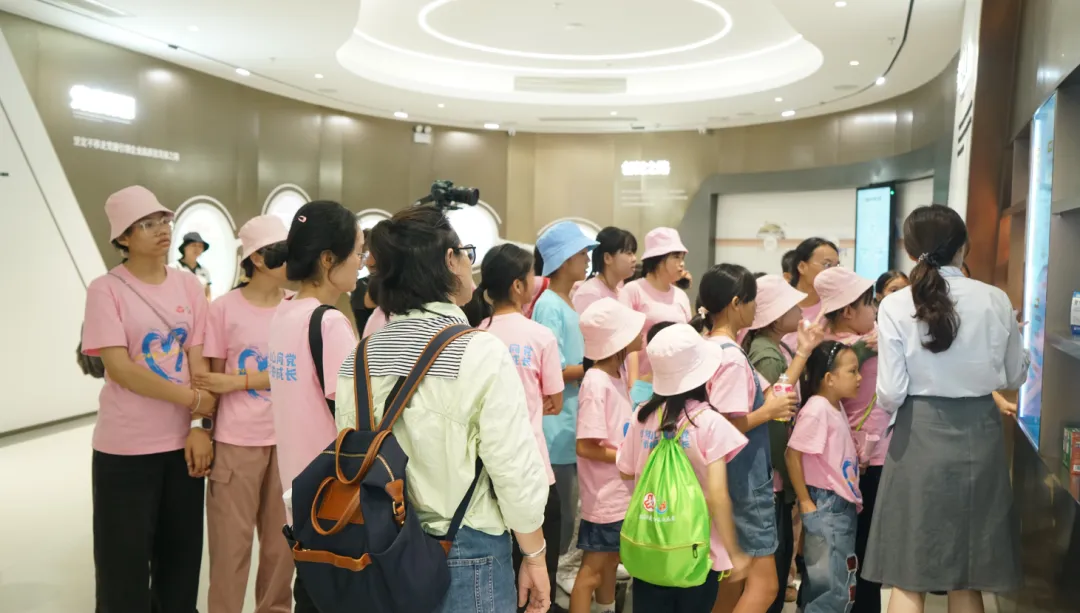 紧接着,孩子们来到了建党百年庆典红旗——070号红旗前。讲解员讲述了AG庄闲药业集团与庆典红旗的深厚渊源。孩子们听得津津有味,眼中闪烁着对党和国家的热爱与敬仰。